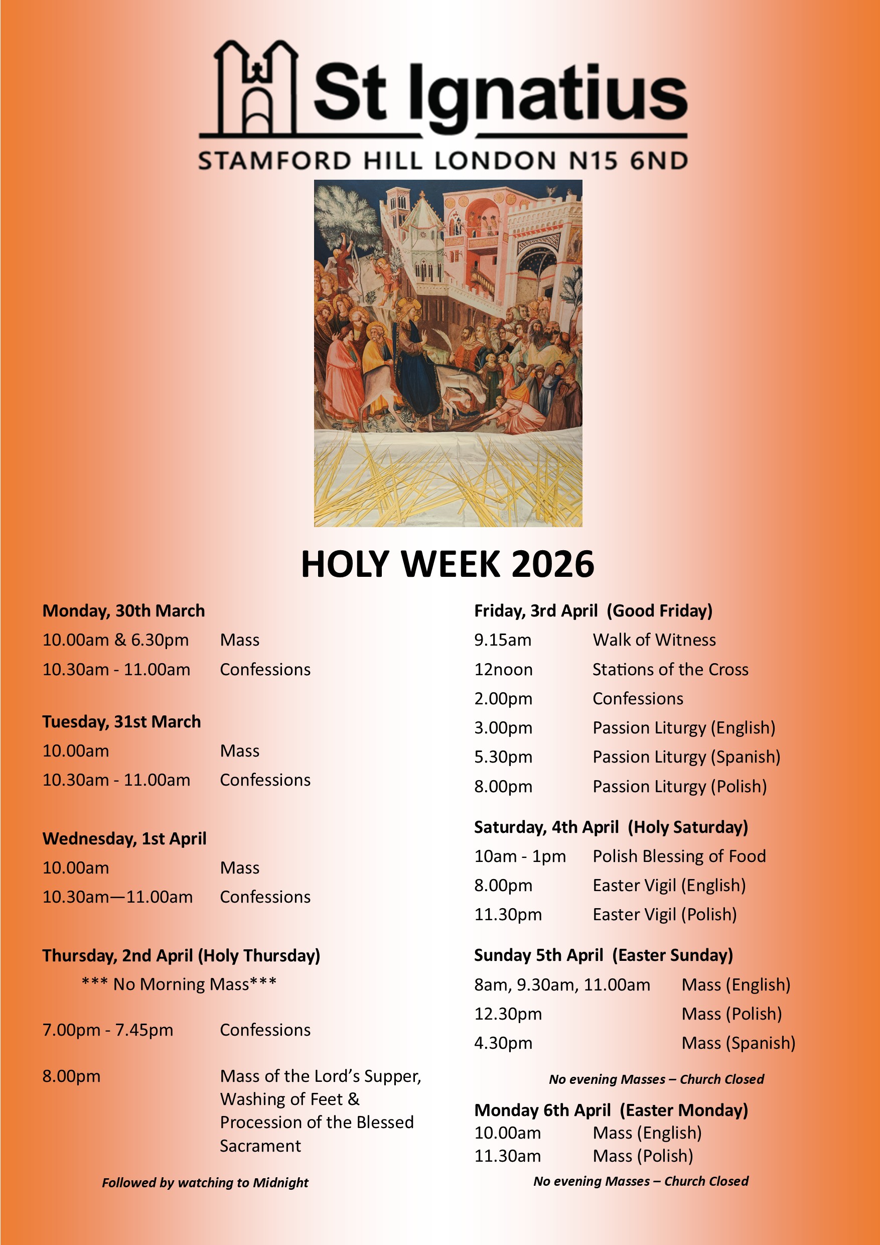 Saturday: 6.30pm (Vigil)